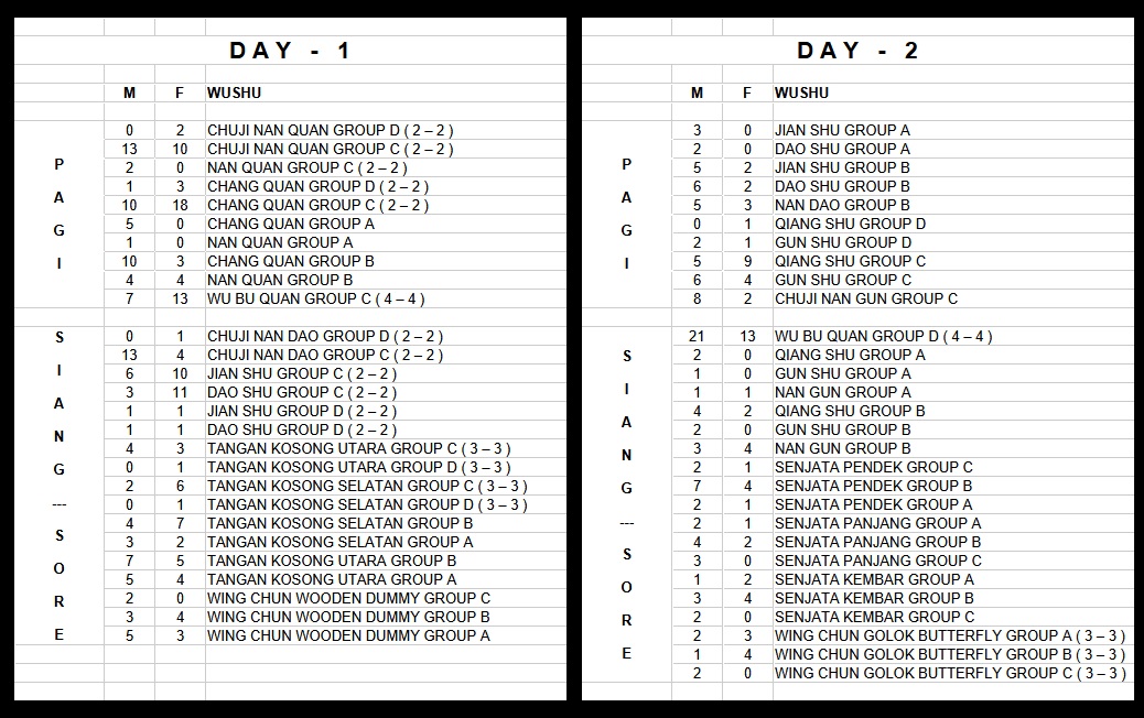 SENJATA PENDEK GROUP C - Field 1 ( 2 athletes) |